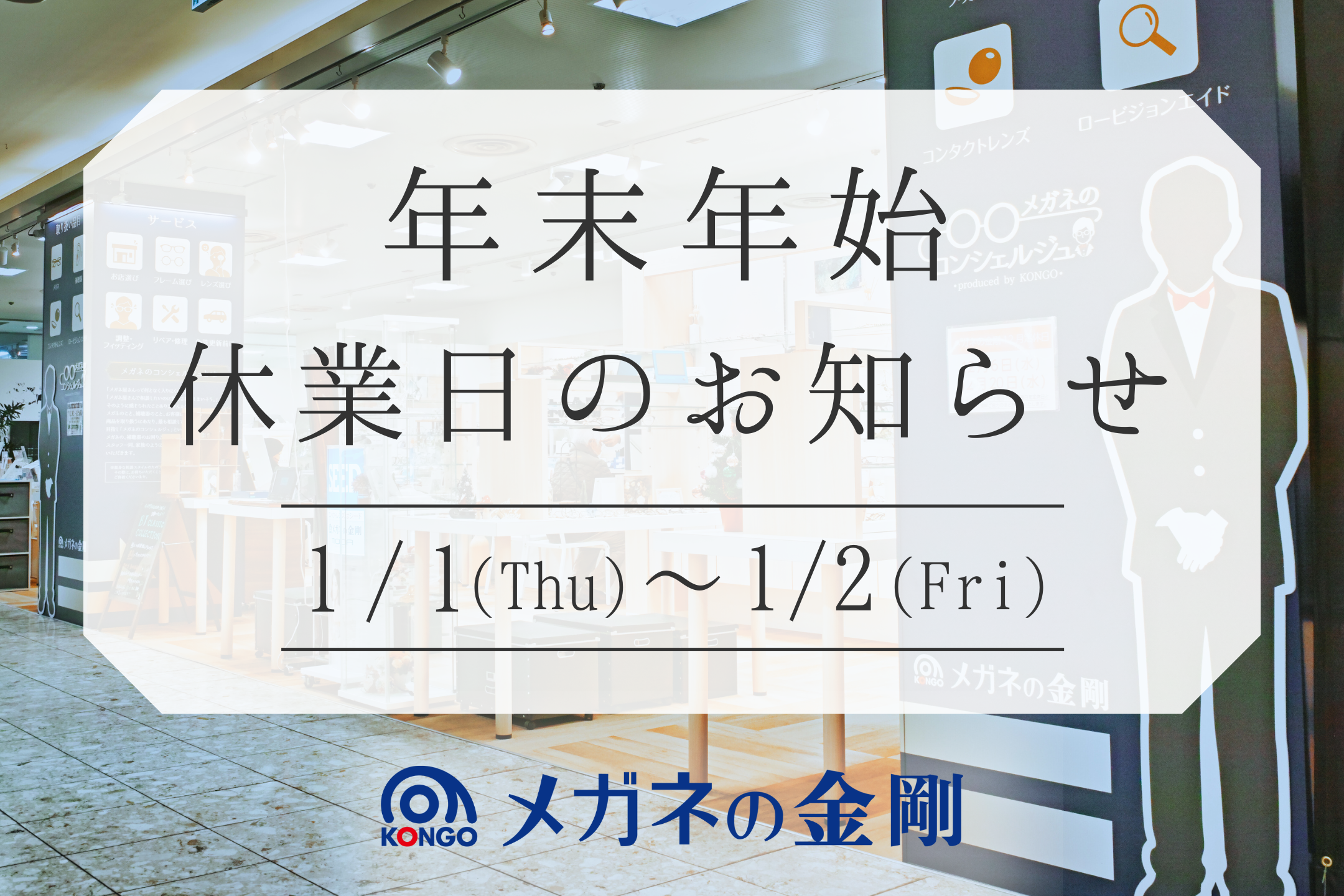 メガネの金剛ダイエー北野田店 毎月第1木曜日、第3木曜日